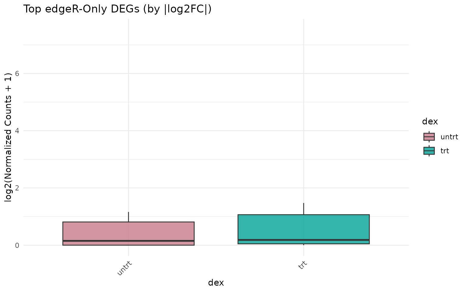 Method-specific DEGs tend to have borderline statistics. Inspecting discordant genes (unique to one method) often reveals marginal significance in the other method as well.