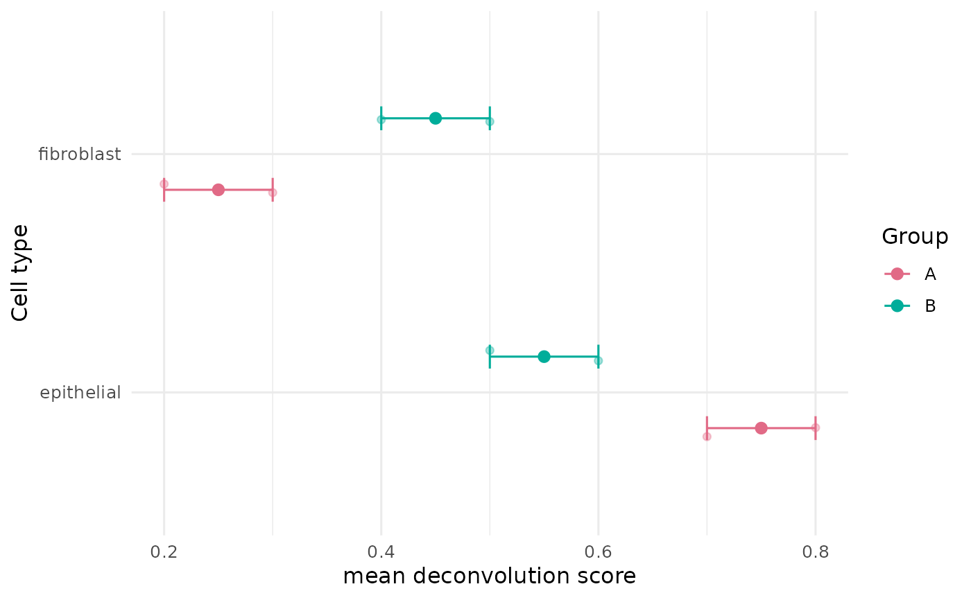 Plot group-level deconvolution scores as dot plot