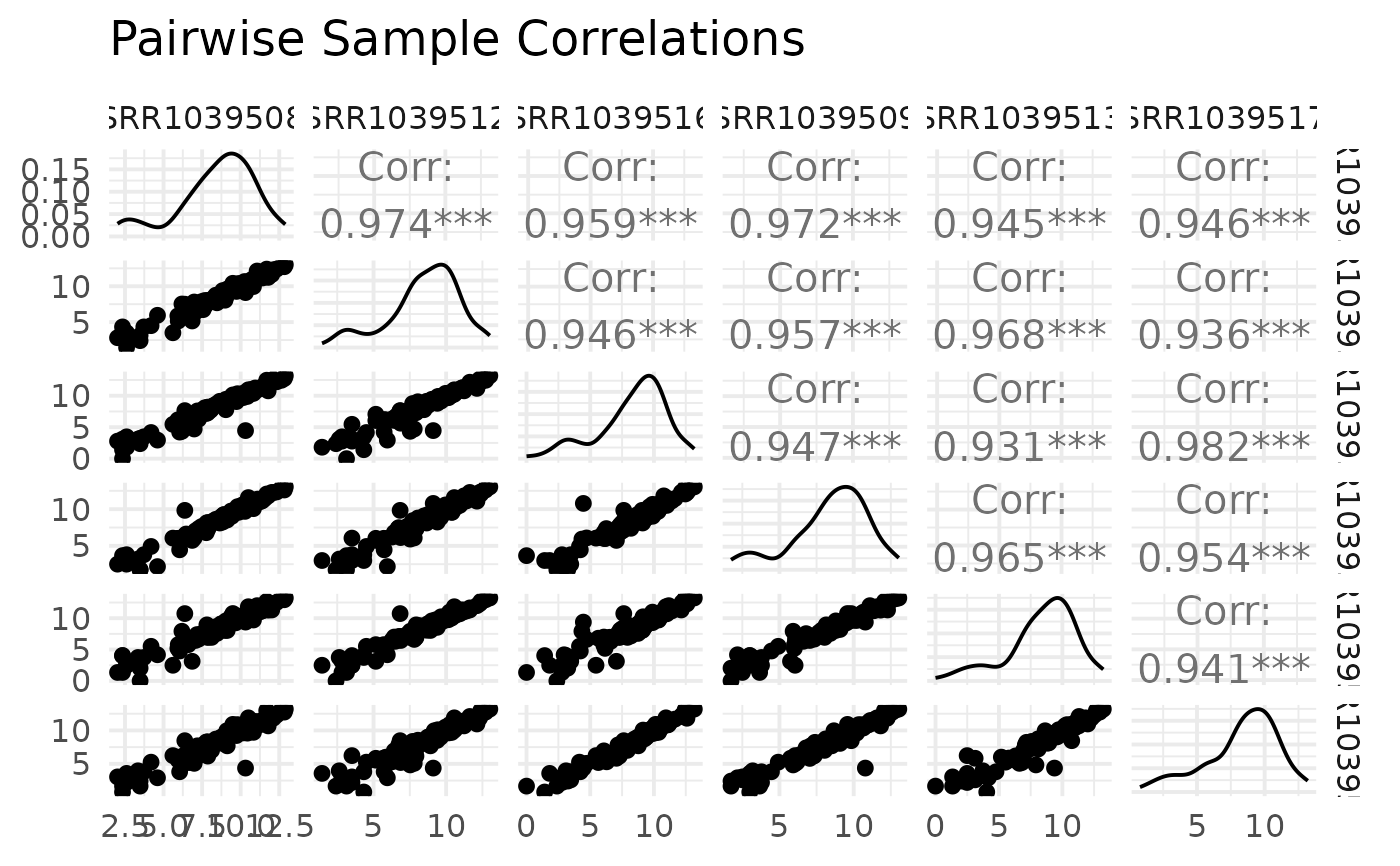 Plot pairwise correlations between samples